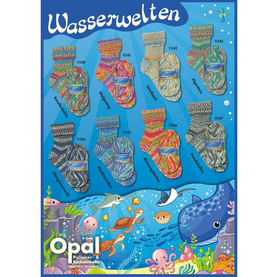 Our much-loved Opal Uni yarns will soon be available in 6ply! Opal Uni is not only perfect for when you want to knit solid colour socks, but is also ideal for knitting contrasting cuffs, heels and toes on your patterned socks. We will also have Opal Wasserwelten (Water World) 4ply yarn soon. We have such a large selection of sock yarns that will keep you busy over the New Zealand summer.