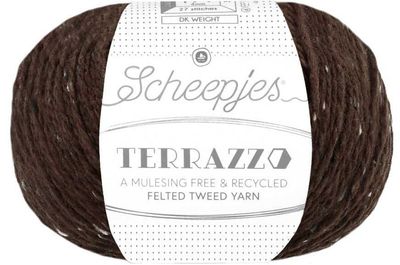 Terrazzo is made from a Premium blend of 70% Recycled Wool and 30% Recycled Viscose. This felted, tweed yarn has a luxurious look and feel and is washable up to 30ᵒC. The subtly speckled colour effect, reminiscent of terrazzo floors, is achieved by twisting fibres of contrasting and complementary colours.