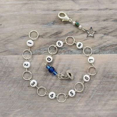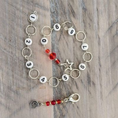 These row counters accommodate up to a 6.5mm needle size. Included is a detachable stitch marker with lobster clasp (to count rows above 10). Each row counter is contained in a tiny organza bag.