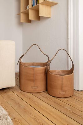 Project 26 is our small bucket, designed for stylish and practical storage. The sturdy structure and comfortable handle provide easy portability, while the minimalist design ensures your projects remain beautifully organized.Perfect for knitters who value both style and convenience, this durable leather bucket is an essential addition to your crafting collection.