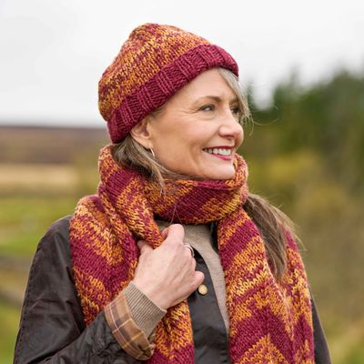 Hat & Scarf: x1 of "Skelberry" (DK), x2 of "Belmont" (Aran), x2 of "Melby" (Aran), x1 of "Tirvister" (Aran)