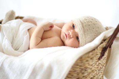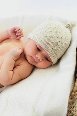 A perfect little set for a newborn, seed stitch hat and booties with tab ties.