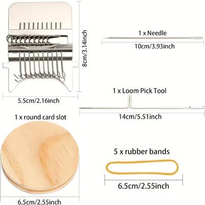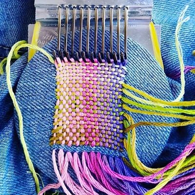 This mini wooden weaving loom can be used for weaving, mending, and stitching on a variety of textiles including jeans and clothes.